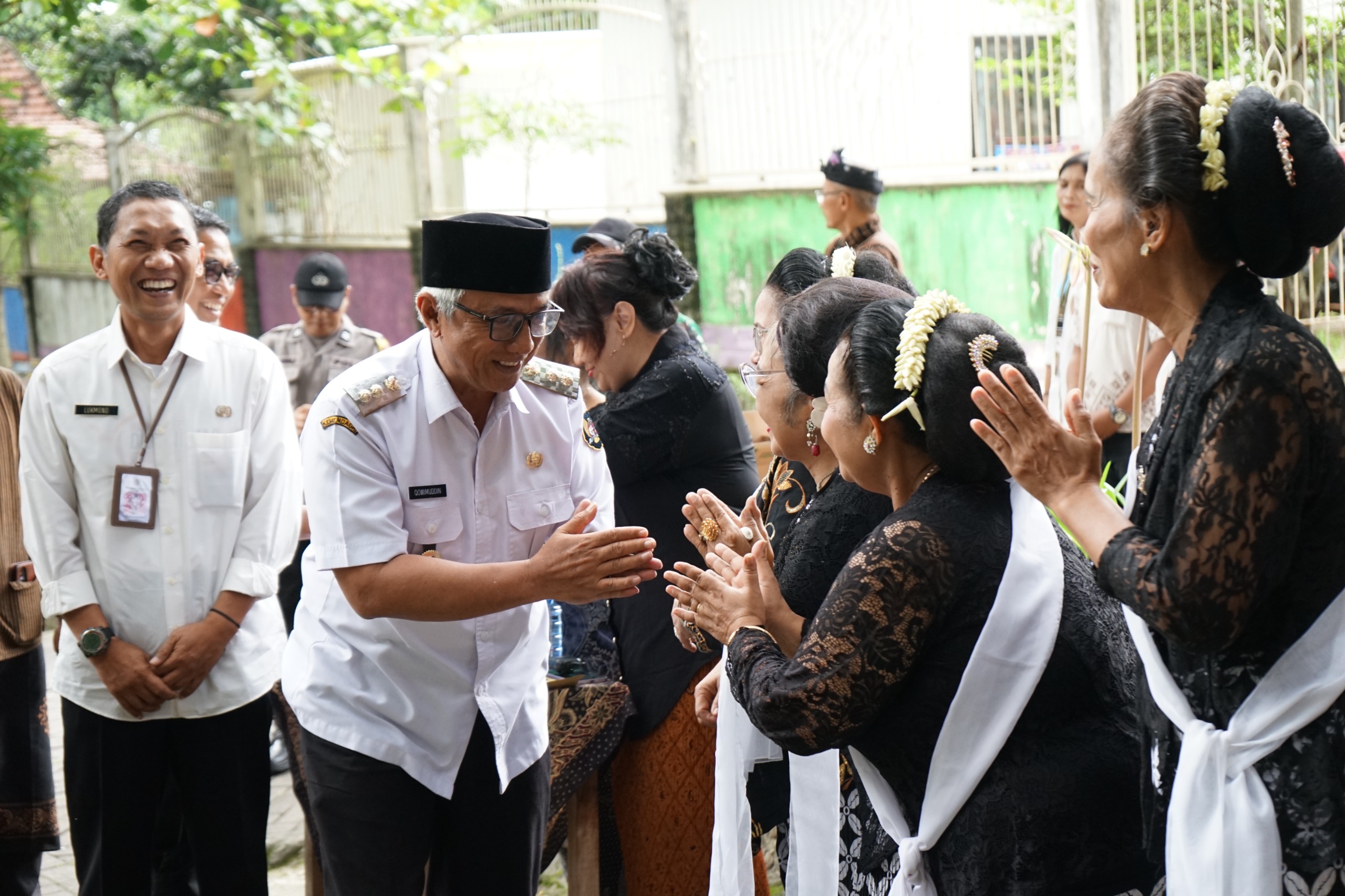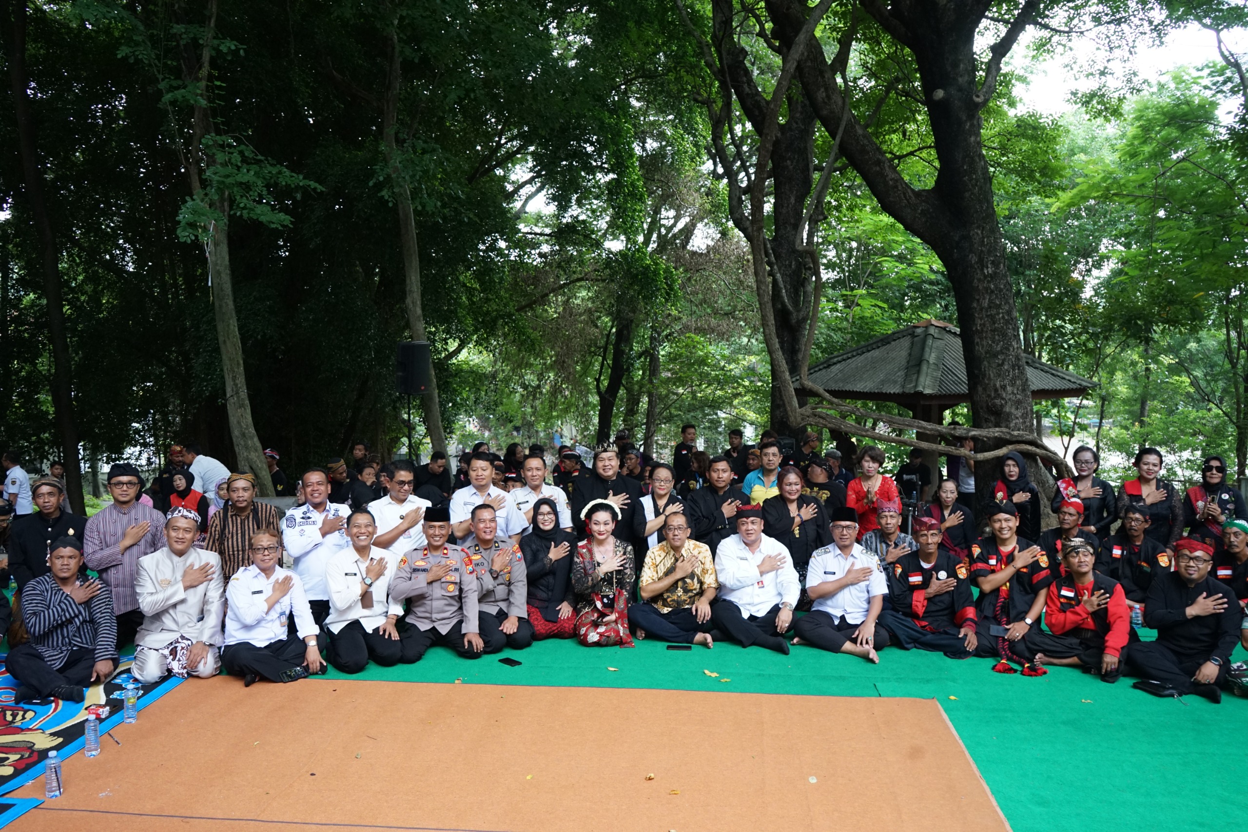 Ketua Yayasan Rumah Budaya Rindu Rikat memberikan bibit pohon kepada Wakil Wali Kota Kediri. Turut hadir, perwakilan Forkopimda, Kepala OPD, Ketua Panitia Dyah Prasadja, dan tamu undangan lainnya.