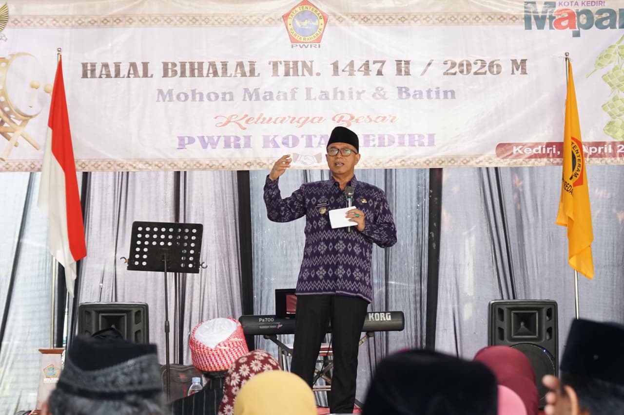 “Saya pribadi mewakili Mbak Wali dan Pemerintah Kota Kediri menyampaikan permohonan maaf lahir dan batin kepada seluruh Bapak Ibu pengurus dan anggota PWRI Kota Kediri. Saya juga ingin menyampaikan rasa hormat dan terima kasih kepada seluruh anggota PWRI Kota Kediri atas dedikasi dan pengabdian yang telah Bapak Ibu berikan selama mengemban amanah sebagai aparatur sipil negara di Kota Kediri. Jasa-jasa Bapak Ibu telah menjadi fondasi yang kokoh bagi pembangunan dan kemajuan kota yang kita cintai ini,” ujarnya.