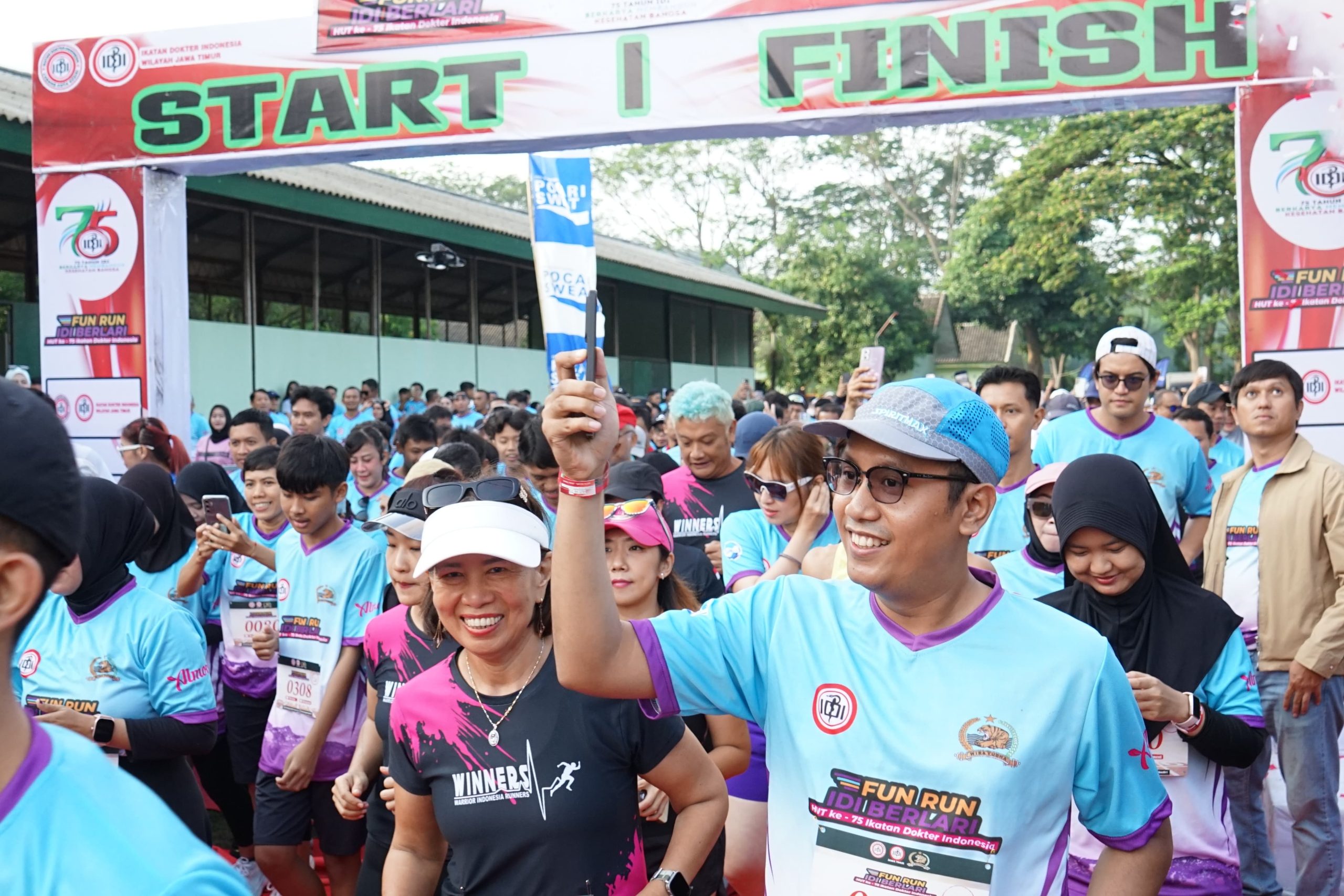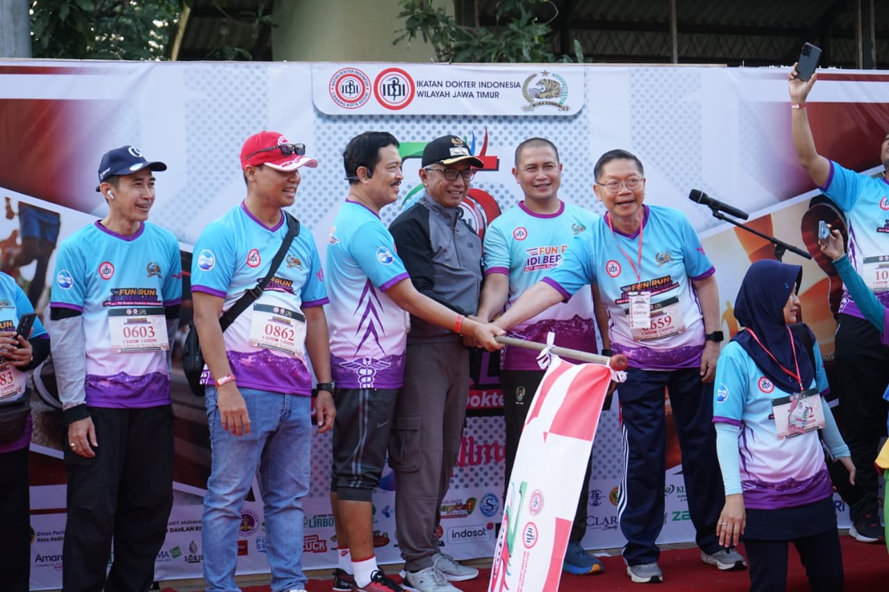 Tasfm.com – Wakil Wali Kota Kediri Qowimuddin memberangkatkan Fun Run IDI Berlari, Minggu (26/10/2025). Event olahraga ini merupakan puncak acara dari HUT ke-75 Ikatan Dokter Indonesia (IDI). Para peserta menempuh jarak 5 kilometer dengan start dan finish di area Brigif 16/Wirayudha. Kegiatan ini diikuti sekitar 1150 peserta.