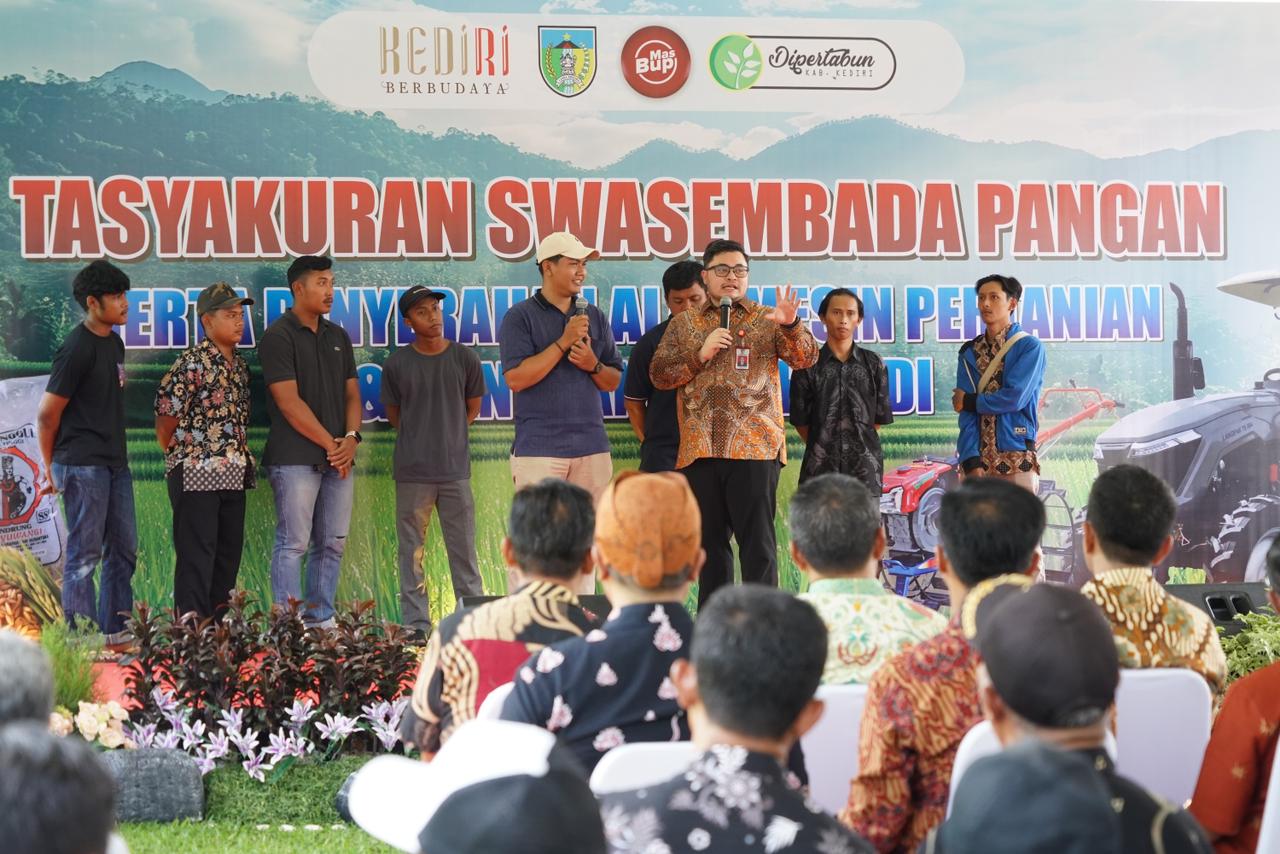 Tasfm.com – Bupati Kediri Hanindhito Himawan Pramana menyerahkan bantuan alat mesin pertanian dan benih padi kepada petani di Kabupaten Kediri. Bantuan diserahkan bersamaan dengan acara tasyakuran atas capaian swasembada pangan pada Tahun 2025.