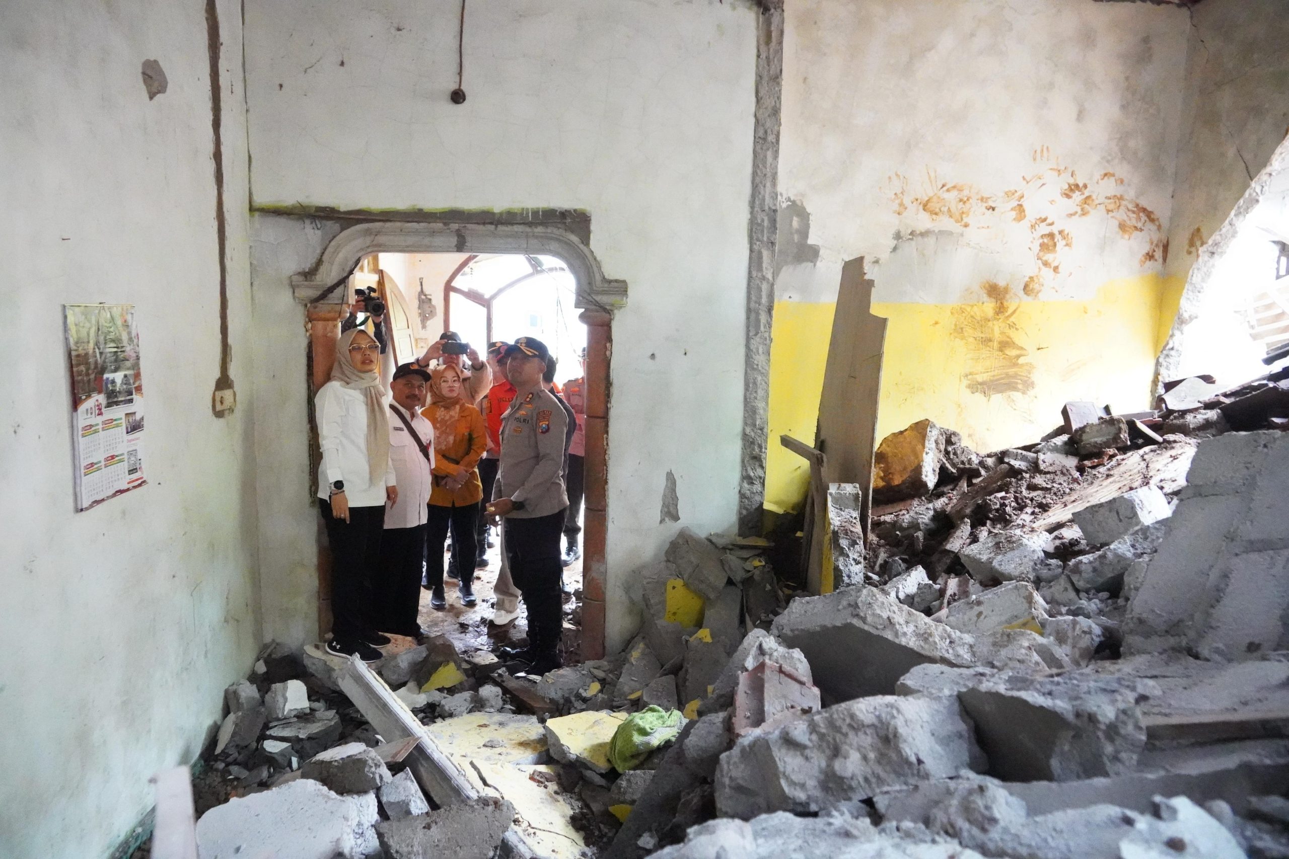 Memastikan warga dievakuasi ke lokasi aman, Wakil Bupati Kediri Dewi Mariya Ulfa bersama lintas organisasi perangkat daerah (OPD) meninjau ke lokasi bencana sekaligus menyalurkan bantuan kepada warga terdampak, Rabu (21/5/2025).