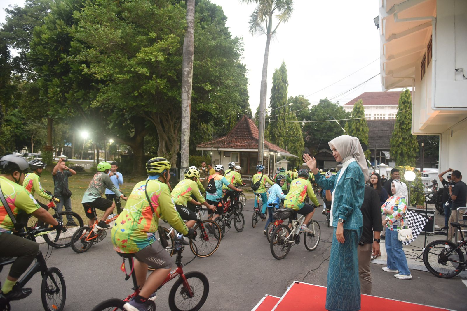 “Suatu kehormatan bagi kami bisa menerima Bapak Ibu sekalian di sini dari Kota Surabaya. Hanya untuk bersepeda menikmati keindahan dan keramahan Kota Kediri. Terima kasih telah memilih Kota Kediri,” ujarnya.