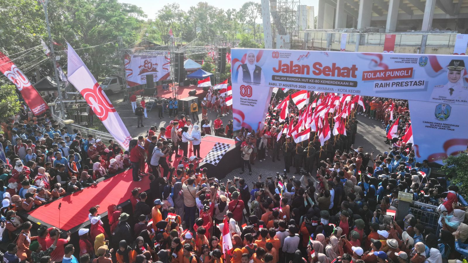 Mbak Wali Dampingi Gubernur Jatim Berangkatkan Jalan Sehat dan Tinjau Pasar Murah