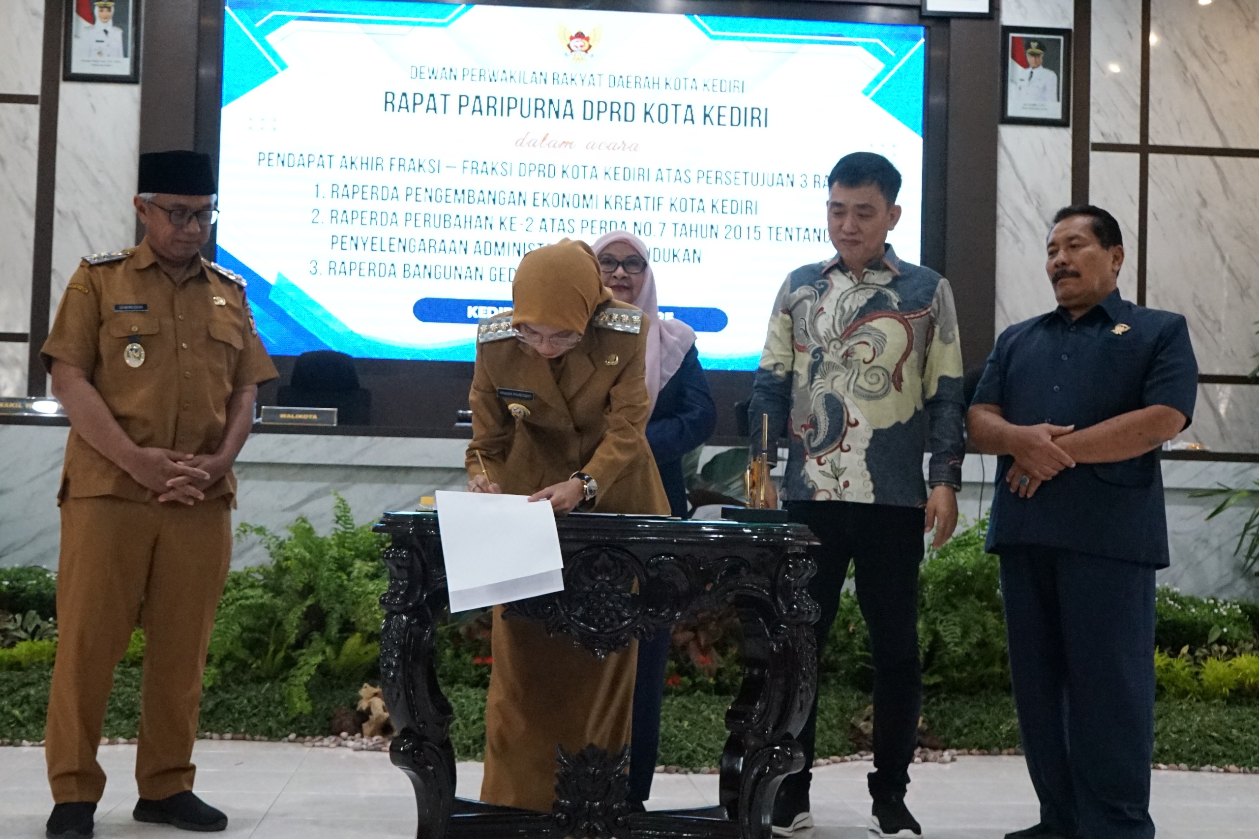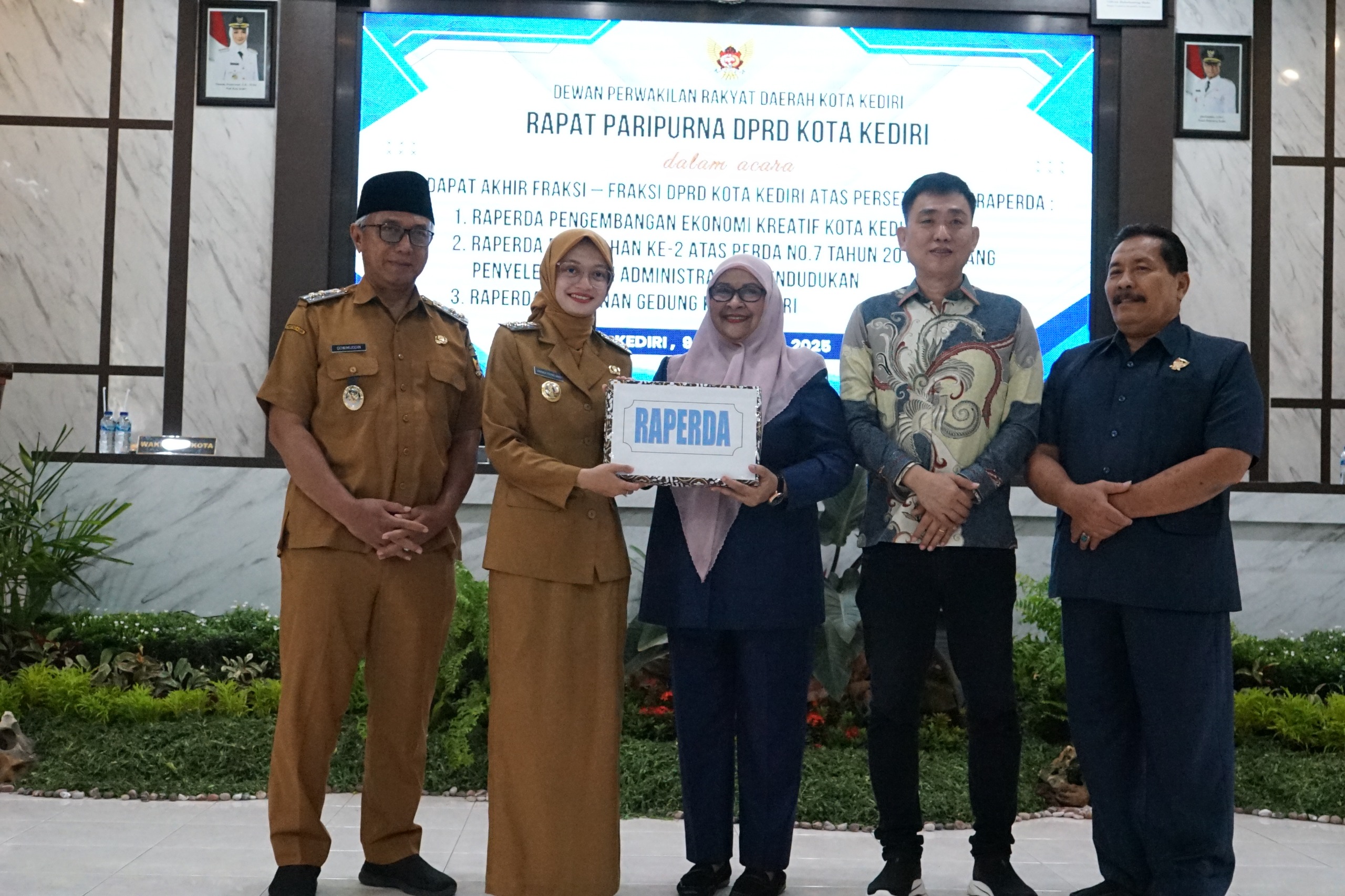Ketiga Raperda tersebut adalah Raperda Pengembangan Ekonomi Kreatif Kota Kediri, Raperda Perubahan ke-2 atas Perda No.7 Tahun 2015 tentang Penyelenggaraan Administrasi Kependudukan. Serta Raperda Bangunan Gedung Kota Kediri.