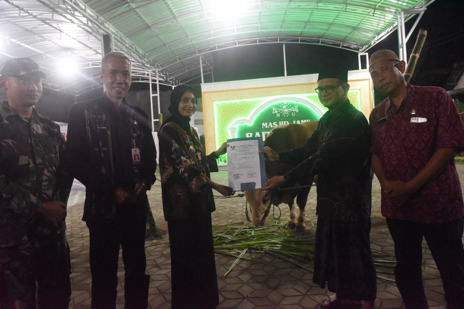 Mbak Wali Serahkan Bantuan Kemasyarakatan Presiden Berupa Sapi di Masjid Jami' Baitur Rohim Kelurahan Bawang