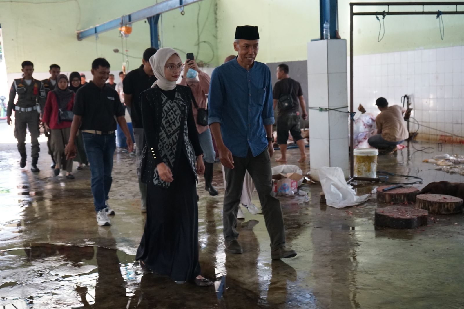 Tasfm.com – Wali Kota Kediri Vinanda Prameswati meninjau UPTD Rumah Potong Hewan (RPH) Kelurahan Pojok, Sabtu (7/6/2025). Tujuannya untuk memastikan hewan kurban yang disembelih sesuai dengan prosedur dan aman dikonsumsi.