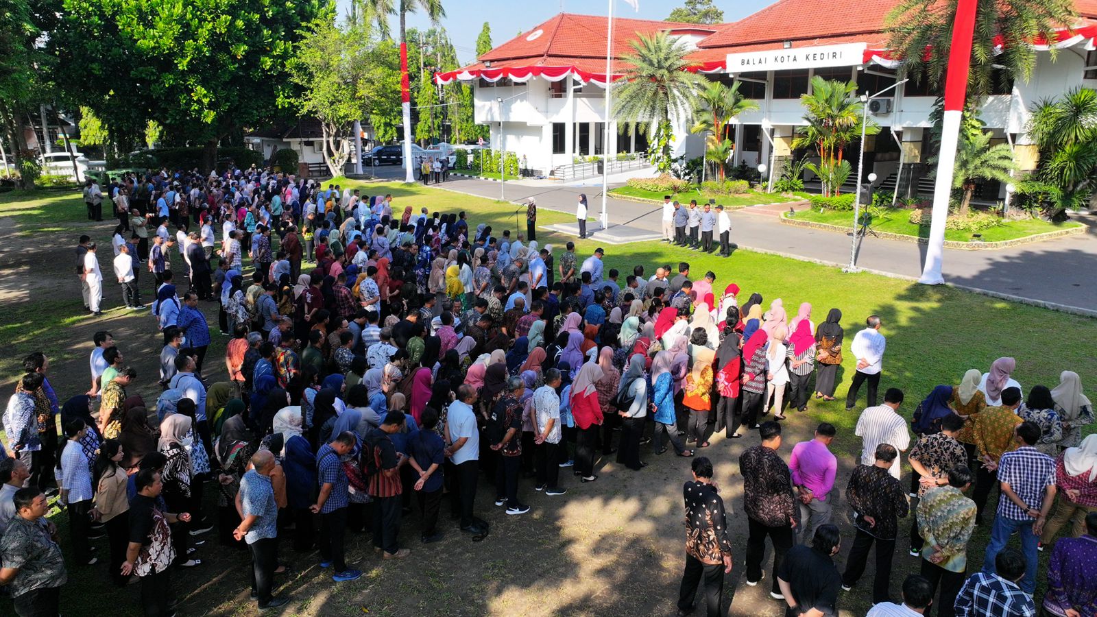 Apel pagi tersebut turut diikuti Wakil Wali Kota Kediri Qowimuddin Thoha, Sekretaris Daerah Bagus Alit, para asisten, staf ahli, kepala OPD, serta seluruh pegawai Pemerintah Kota Kediri.
