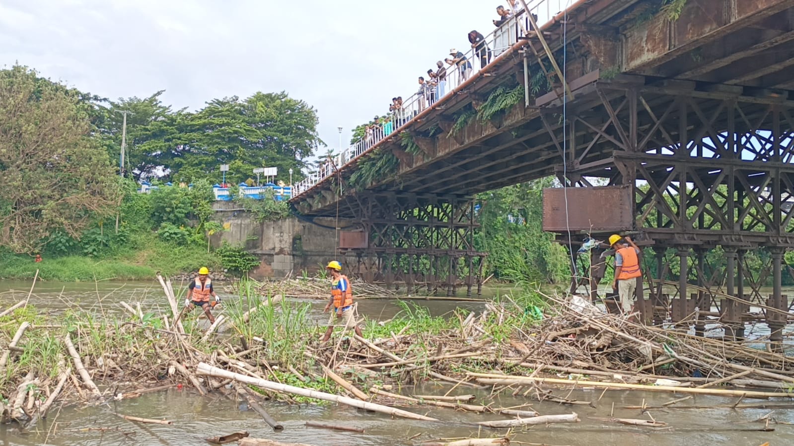 Tasfm.com – Menanggapi adanya tumpukan sampah pada pilar Jembatan Brantas Lama, Pemerintah Kota Kediri melalui Badan Penanggulangan Bencana Daerah (BPBD) bersama tim gabungan yang terdiri dari Dinas Pekerjaan Umum dan Perumahan Rakyat (DPUPR), Perum Jasa Tirta (PJT), dan Dinas Lingkungan Hidup, Kebersihan, dan Pertamanan (DLHKP) melakukan pembersihan pada bangunan berusia 156 tahun tersebut, Rabu (18/2).