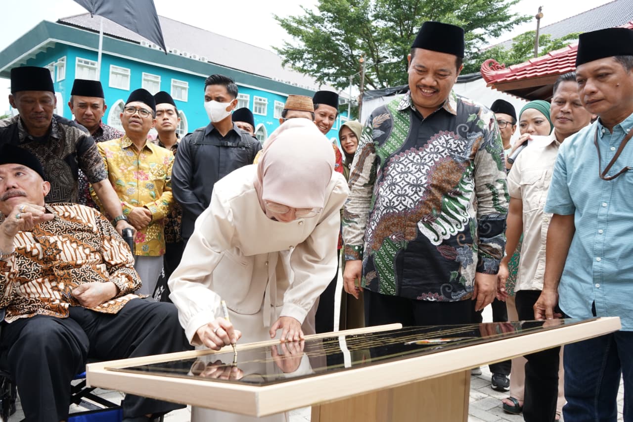Dalam kesempatan ini Mbak Wali juga menyampaikan apresiasi saya kepada Soengging Soerjasmoro. Keputusannya untuk mewakafkan lahan dan membangun Masjid ini dengan menyematkan nama almarhum ayahanda, adalah sebuah teladan nyata. “Semoga Masjid ini menjadi amal jariyah yang pahalanya mengalir tanpa putus bagi almarhum Bapak Abi Sa’roni dan juga menjadi wasilah keberkahan bagi Bapak Soengging sekeluarga,” ujar wali kota termuda ini.