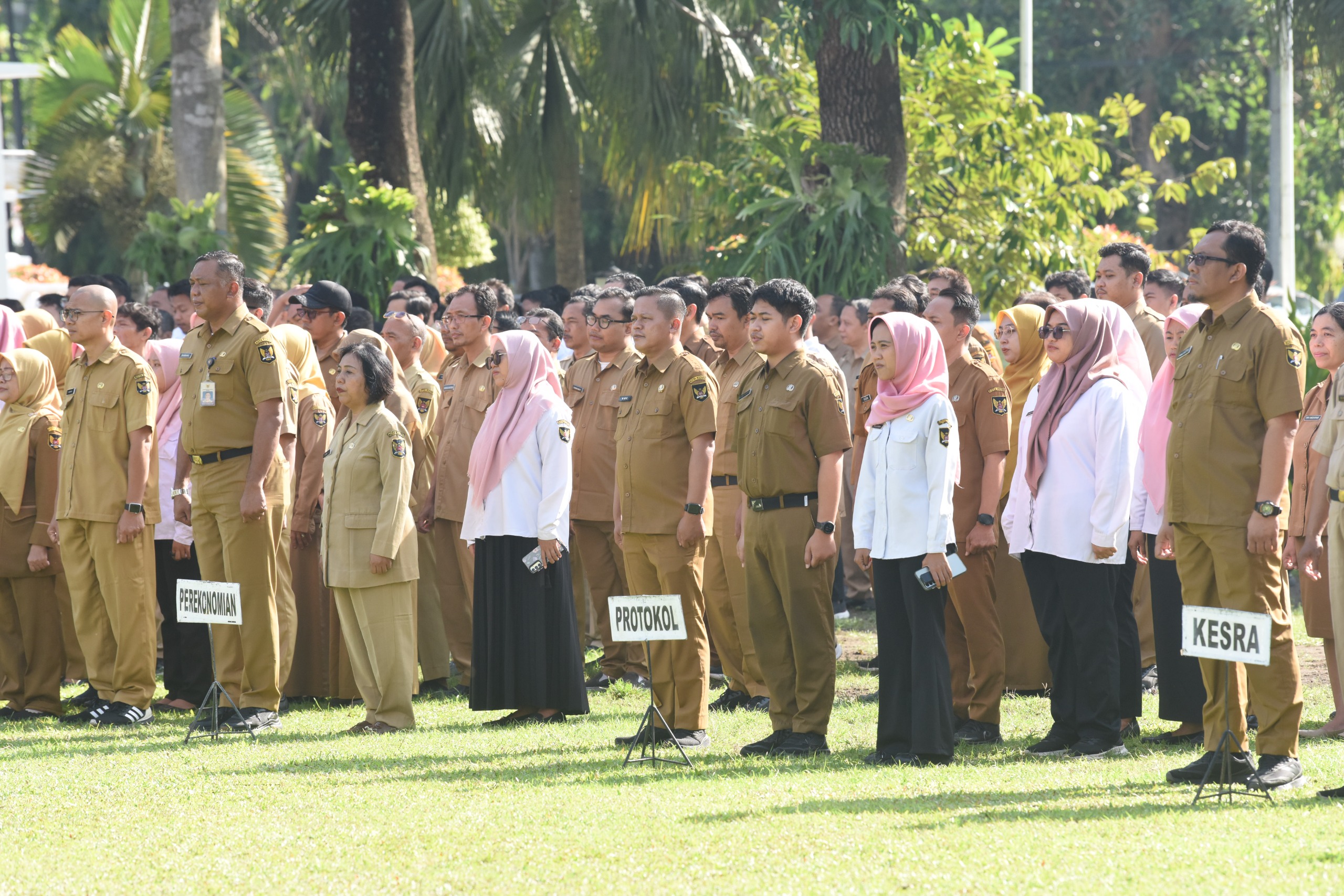 Turut hadir, Pj Sekda M.Ferry Djatmiko, Asisten, Staf Ahli, Kepala OPD, Direktur BUMD, Camat, dan peserta apel lainnya.