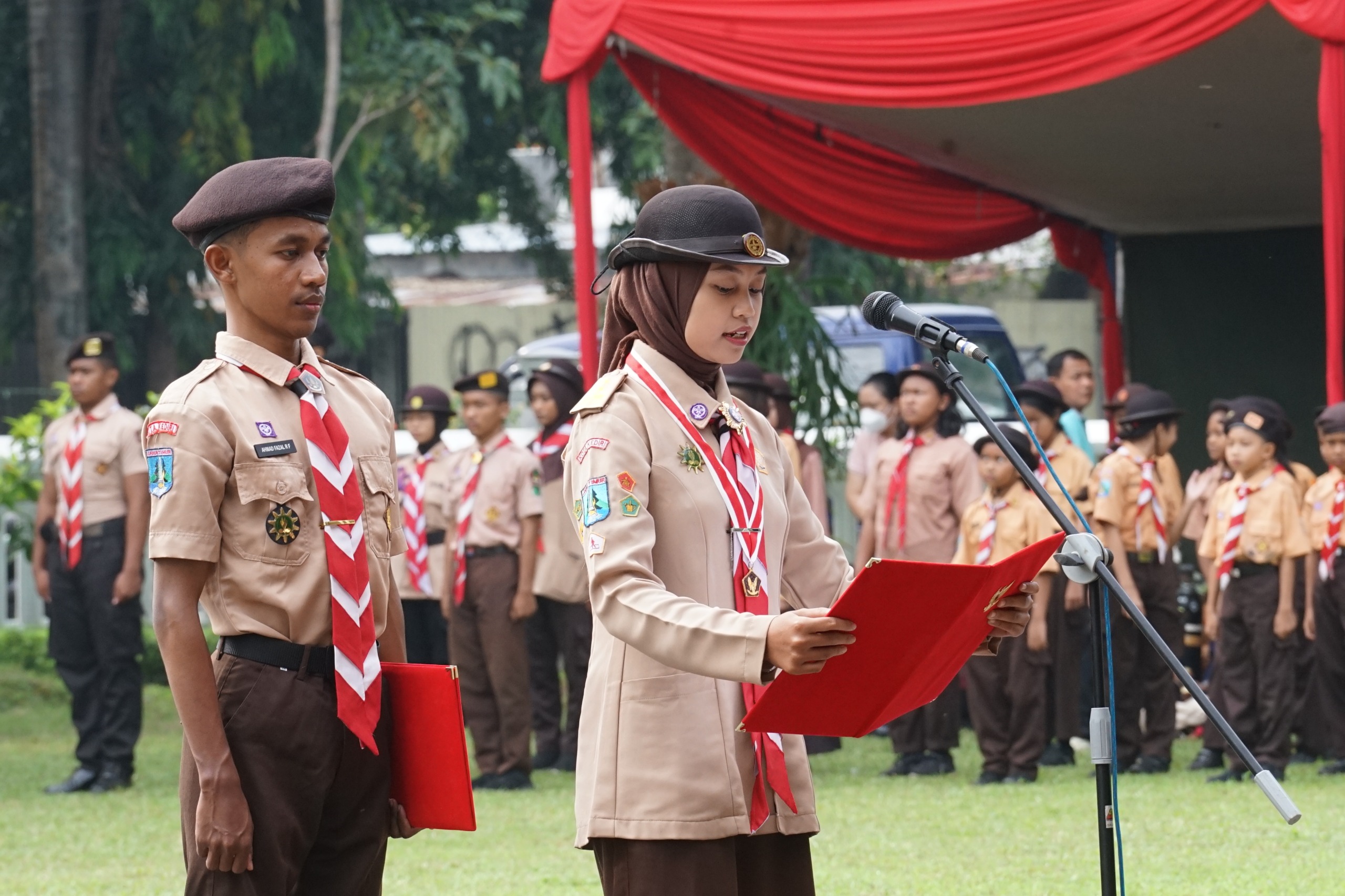 Tasfm.com – Peringatan Hari Sumpah Pemuda ke-97 tahun 2025 di Kota Kediri digelar di Halaman Balaikota Kediri, Selasa (28/10/2025). Bertindak sebagai inspektur upacara, Wali Kota Kediri Vinanda Prameswati, yang dalam kesempatan ini juga memberikan apresiasi kepada anggota Pramuka Kota Kediri yang berprestasi.