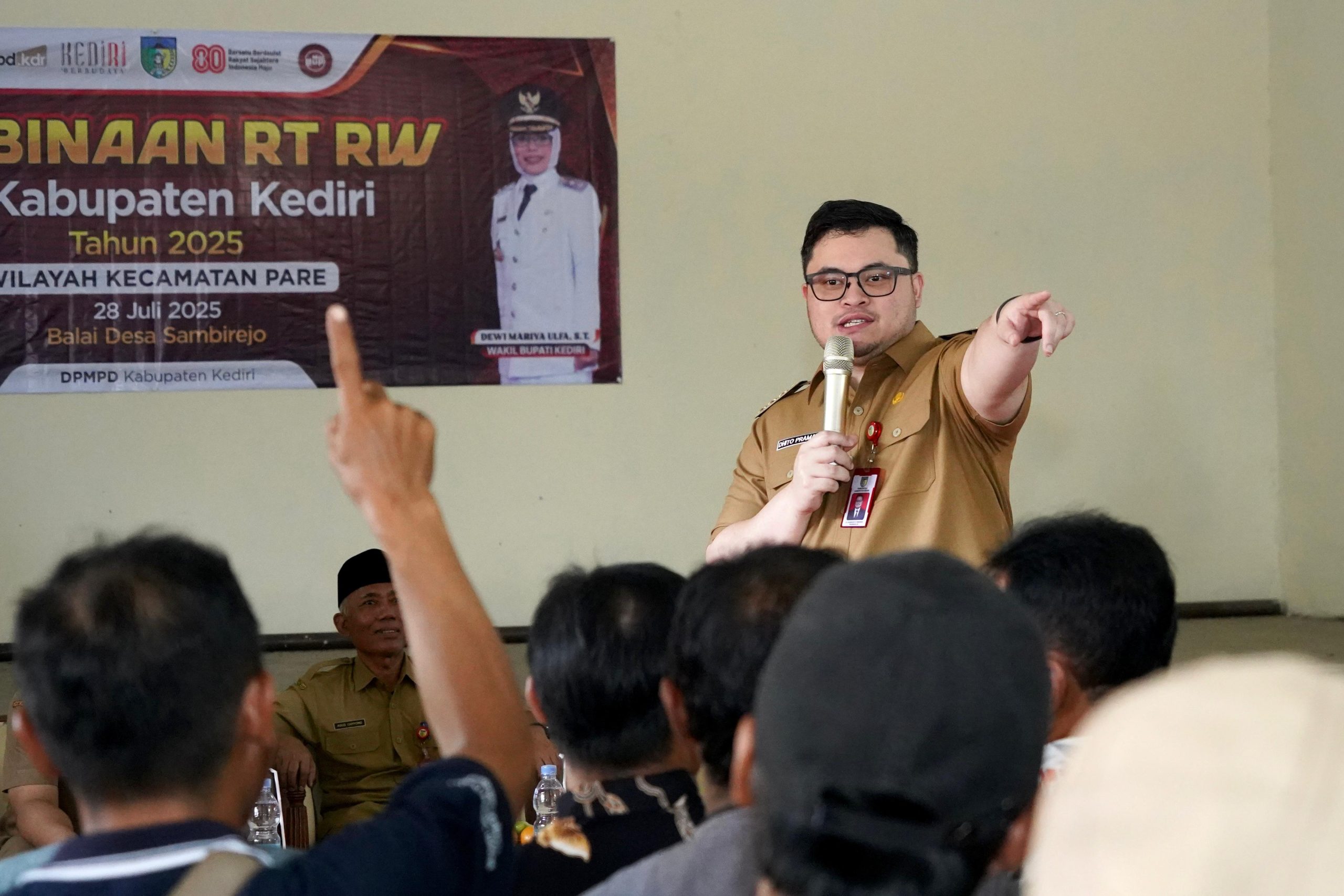 Arahan itu disampaikan Mas Dhito dalam acara pembinaan ketua RT/RW di wilayah Kecamatan Pare yang berlokasi di Balai Desa Sambirejo, Senin (28/7/2025).