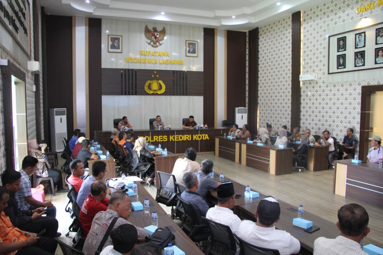 Kegiatan ini dihadiri oleh Kapolres Kediri Kota AKBP Anggi Ibrahim Saputra, S.H., S.I.K., M.H., beserta para pejabat utama Polres Kediri Kota, di antaranya Kasat Reskrim AKP Cipto Dwi Laksana, S.I.K., Kasubbag Dal Ops AKP Ponco Seputro, S.H., Kasat Binmas Iptu Cahyo Widodo, S.H., dan KBO Sat Intelkam Iptu Sri Mulyono, S.H.