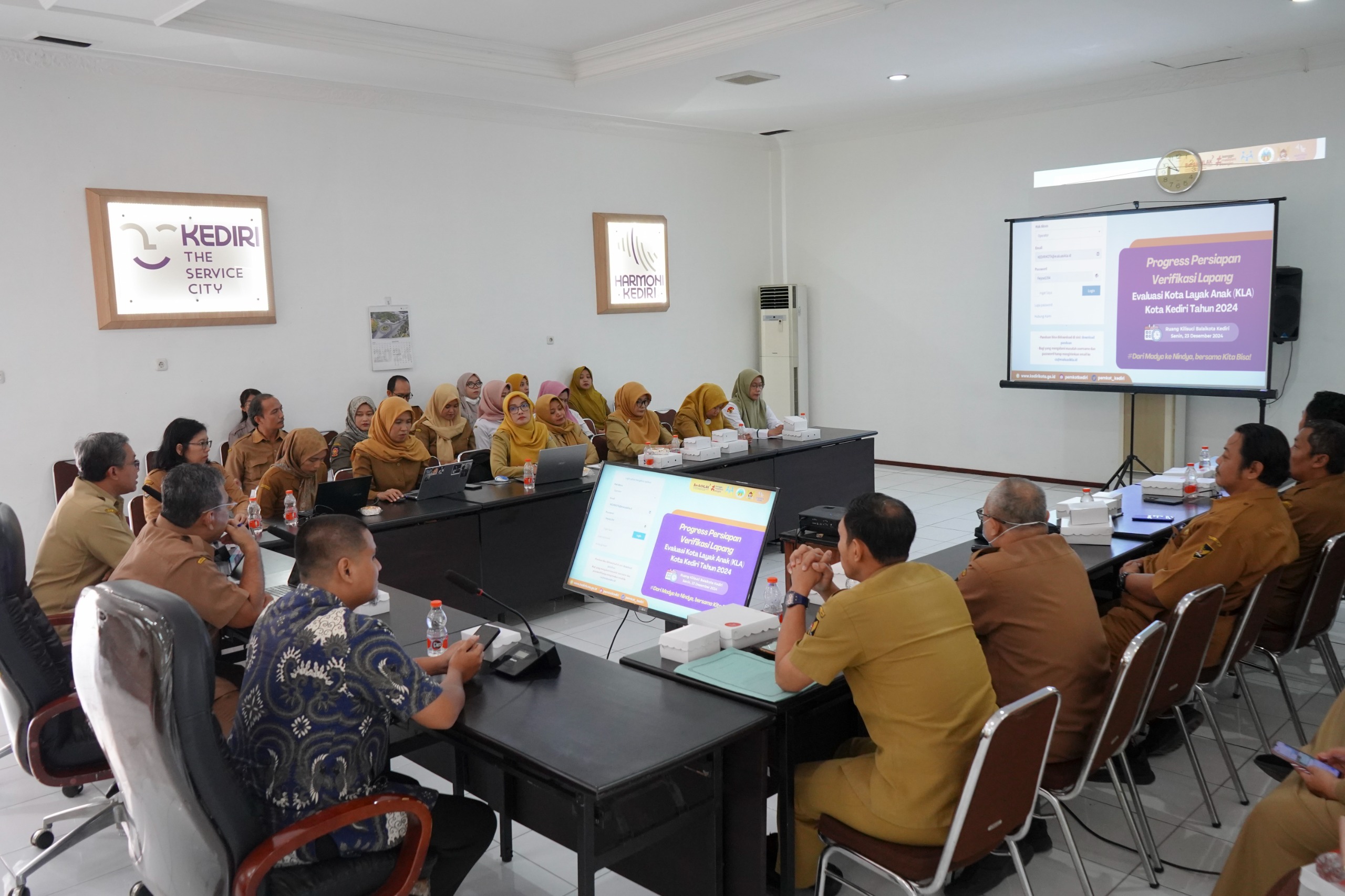 Tasfm.com – Guna mempersiapkan penilaian verifikasi lapangan Kota Layak Anak (KLA) Kota Kediri Tahun 2024 yang akan dilakukan Kementerian PPPA, Pemerintah Kota Kediri melalui BAPPEDA Kota Kediri menggelar Rapat Penguatan Evidence yang dihadiri peserta dari perwakilan OPD Pemkot Kediri serta stake holder terkait, Senin (23/12). Berlangsung di Ruang Kilisuci Pemkot Kediri, kegiatan yang diikuti empat puluh peserta itu membahas mengenai peninjauan ulang hasil verifikasi administrasi oleh pemerintah Provinsi Jawa Timur untuk mendongkrak skor verifikasi lapangan.